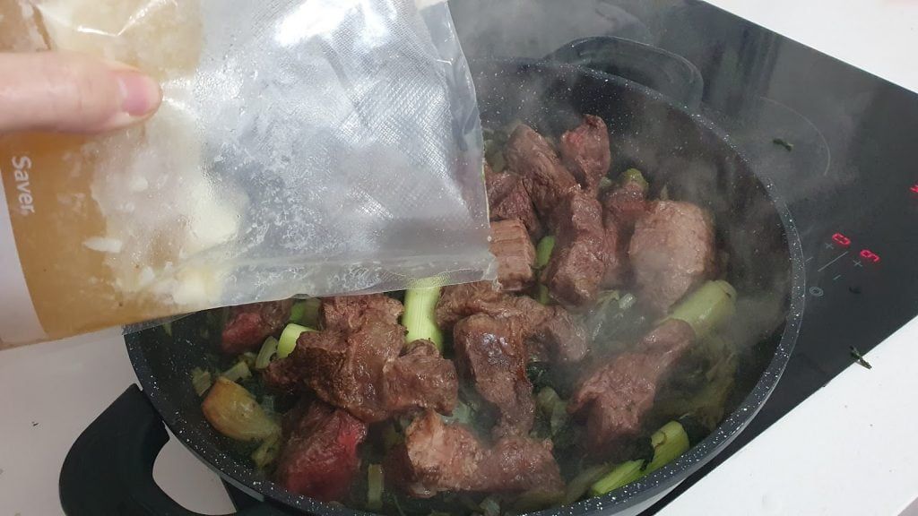 בשר הצלי נצרב בסיר להשחמה והוצא הצידה.